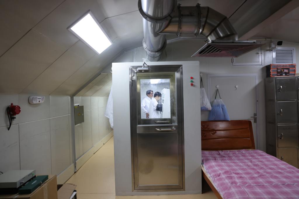 此外,为了排除周围材料带来的环境放射性干扰,直径和高度均为6厘米、重达1公斤的圆柱形高纯锗探测器被“层层包裹”——20厘米厚的含硼聚乙烯、20厘米厚的铜、20厘米厚的铅、1米厚的聚乙烯……实验人员通过层层屏蔽搭建了一个非常纯净的空间,把环境本底的干扰信号也降到了最低。