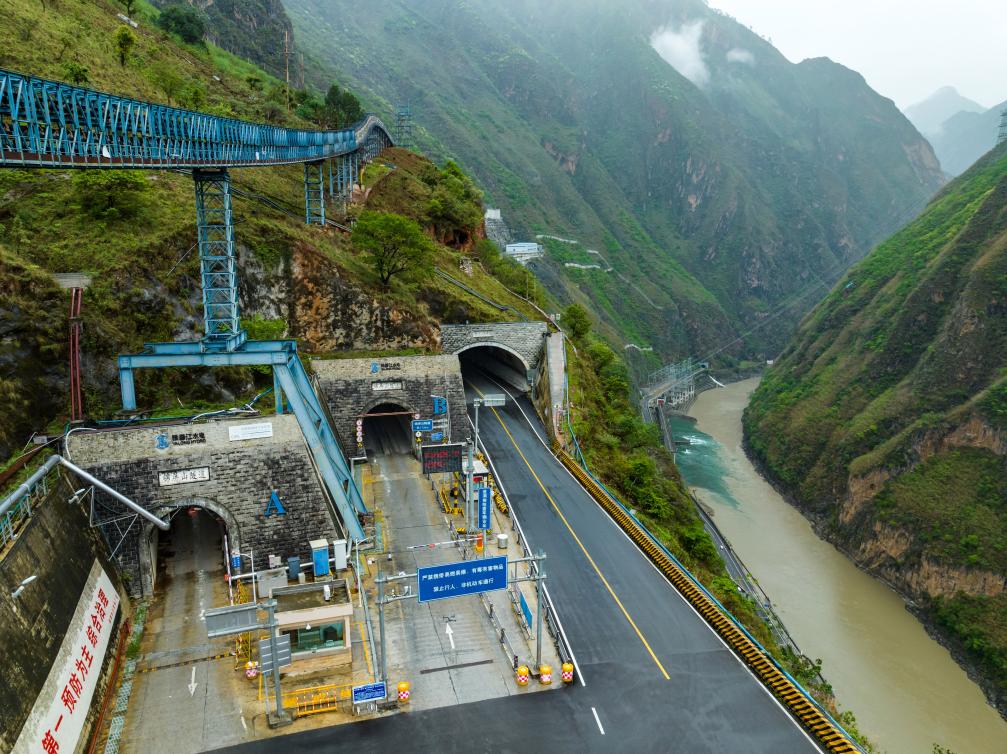 ↑这是7月4日拍摄的中国锦屏地下实验室所在的锦屏山交通隧道口以及旁边的雅砻江(无人机照片)。